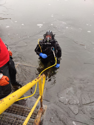 Am vergangenen Wochenende bot der Salzgittersee aufgrund einer geschlossenen Eisdecke die seltene Möglichkeit zur Durchführung eines Eistauchgangs. Vergleichbare Bedingungen waren zuletzt im Jahr 2021 gegeben. Insgesamt nahmen 11 Taucher an dieser besonderen Übung teil.